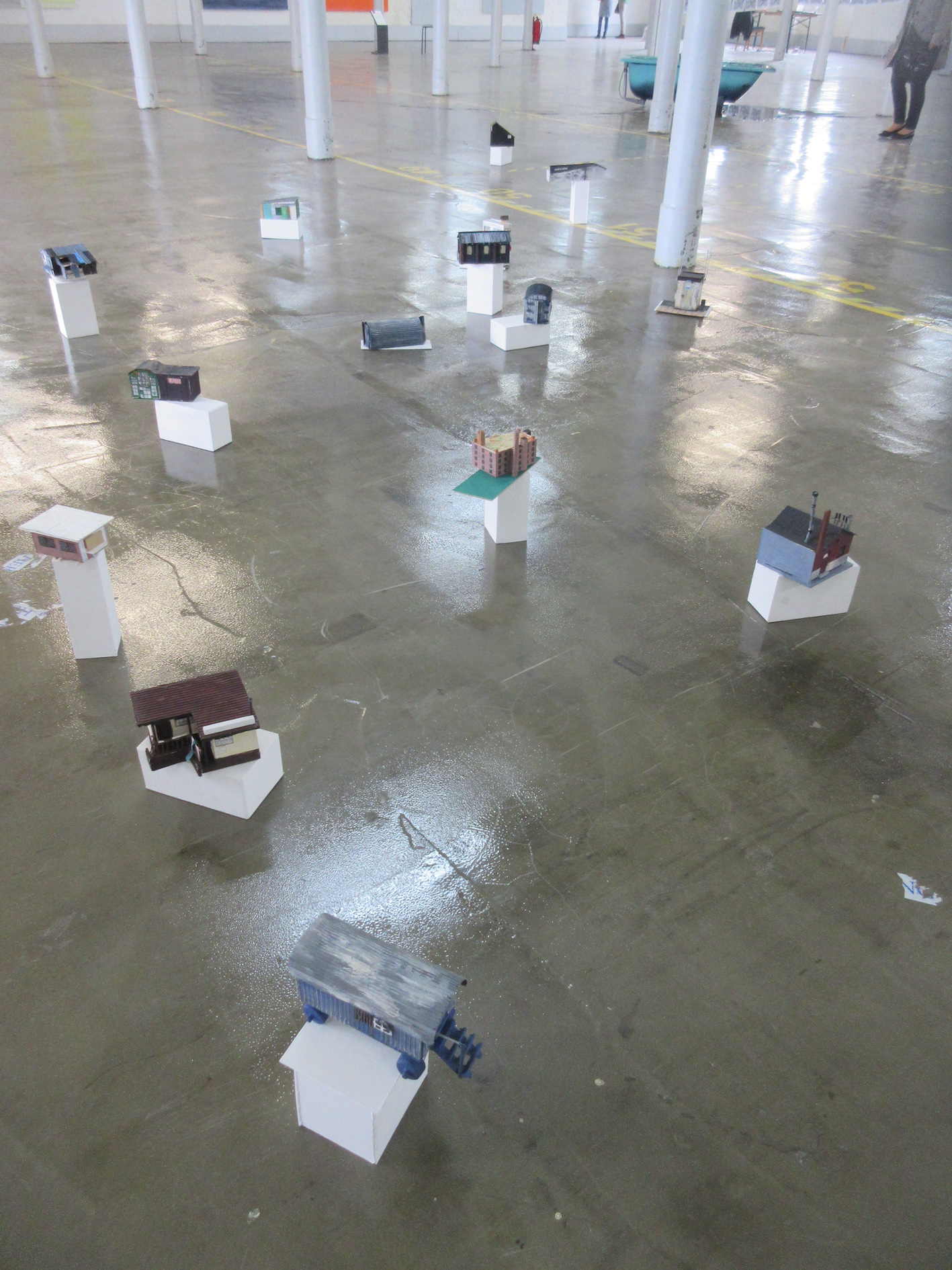 Jill Randall was invited by curator Barbel Mollmann to participate in the international project and exhibition, ‘Open Spaces-Under Construction’, at Kubaii, Bocholt, Germany, along with 14 artists from around the world, April 22nd -May 1st 2016. This was held in an old textile mill in an industrial quarter of Bocholt, Germany. Randall created a series of new Bocholt architectural structures , responding directly and immediately to the place.
