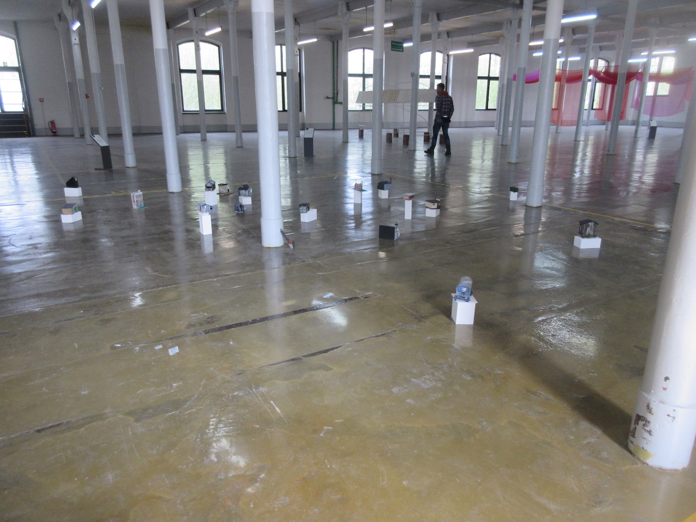 Jill Randall was invited by curator Barbel Mollmann to participate in the international project and exhibition, ‘Open Spaces-Under Construction’, at Kubaii, Bocholt, Germany, along with 14 artists from around the world, April 22nd -May 1st 2016. This was held in an old textile mill in an industrial quarter of Bocholt, Germany. Randall created a series of new Bocholt architectural structures , responding directly and immediately to the place.