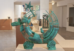 I am exhibiting ‘End of the Line’, a sculpture from an exhibition I had at Castlefield in 1990 , alongside ‘In the upside down land’, a sculpture from last year.