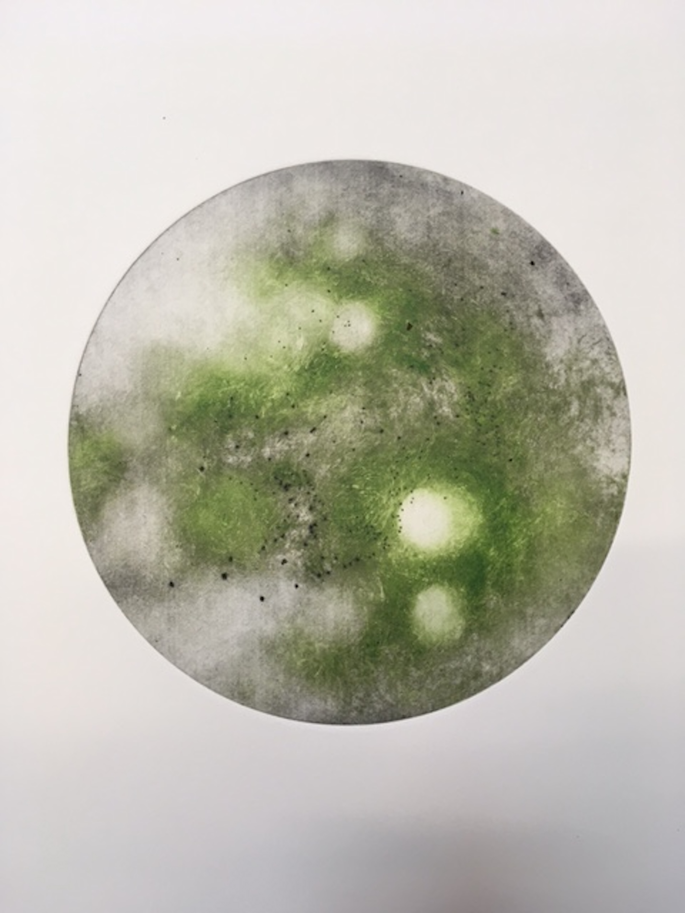 Jill Randall often creates multi-layered prints combining several different print methods. She likes the alchemy of printmaking-the transformational processes and traditional materials of the medium-beeswax, straw hat varnish, aquatint resin. Subject-matter has parallels with her sculpture practice, and explores natural and extraordinary phenomena in landscapes and the environment, mining sites, mapping and hidden or invisible places such as the ocean floor or abandoned mine workings. She works with unconventional, often abject subject matter such as sinkholes, fatbergs and new volcanic islands.